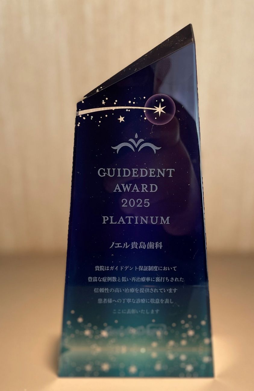 ガイドデントアワードは、インプラント治療の保証を行う第三者機関が、全国約4,000弱の契約歯科医院の中から「治療実績」と「治療の安定性」をもとに選定する賞です。